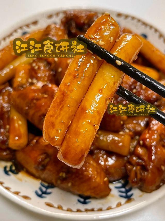 待年糕变软熟透,鸡翅软烂时,转大火收汁。