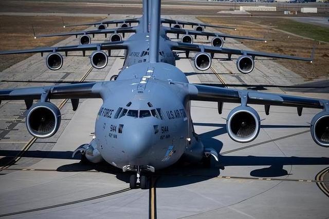 三架美军C-17运输机与一架KC-135R战略加油机正朝着英国皇家空军费尔福德基地飞去,另有两架美国空军C-17运输机直奔安德鲁斯联合基地,这种跨区域的兵力投送配置,往往是大规模军事行动启动前的典型征兆。